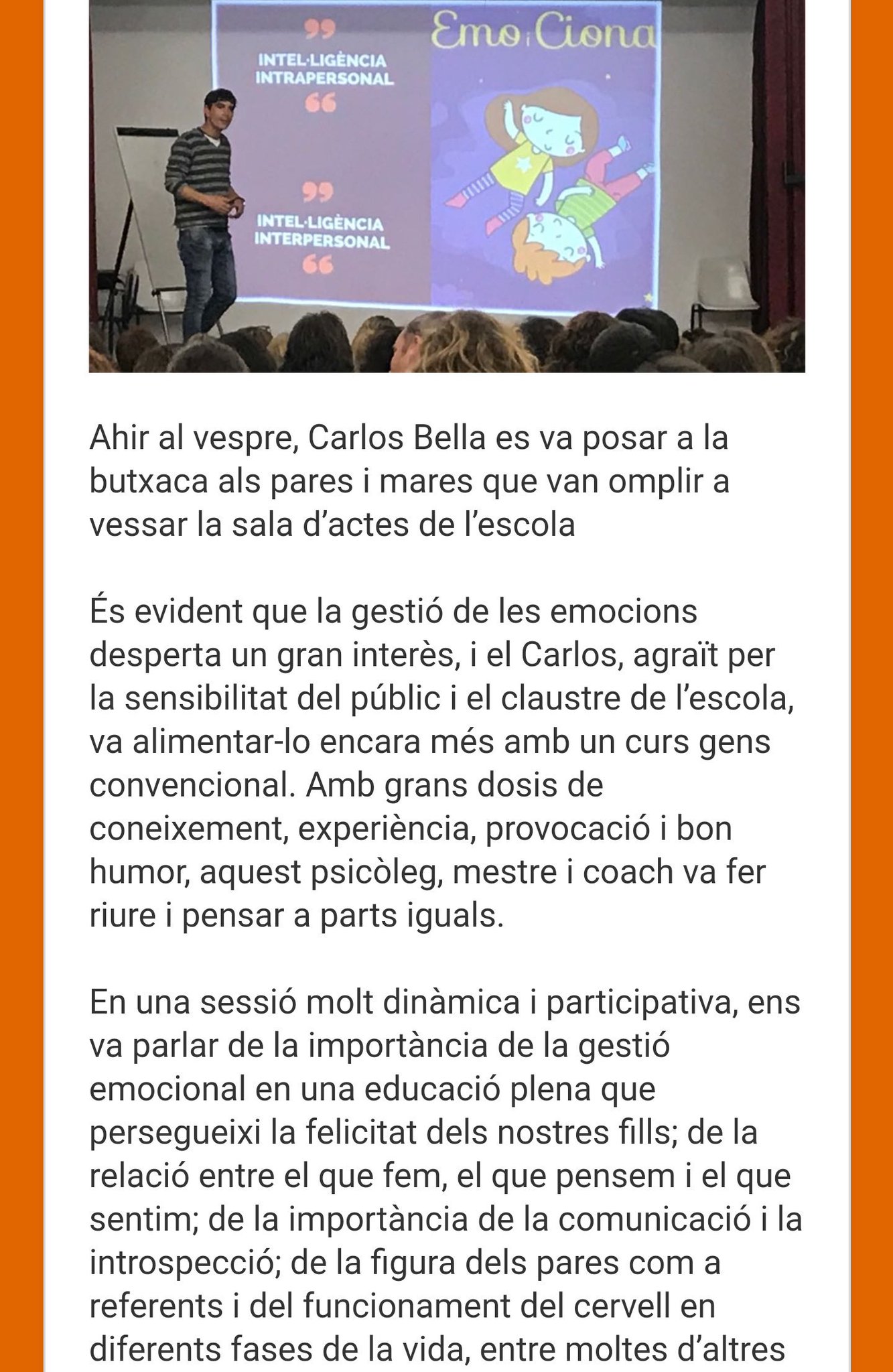 M han arribats diferents correus i missatges encoretjadors n hi ha que aprofiten els recursos del blog i altres que aprofiten per practicar els seus jocs i esports. En carles capdevila ens va oferir una conferència plena d humor i de missatges optimistes. Educar de bon humor. Esper que aquestes petites entrades al blog d educació física vos siguin útils i servesquin per activar vos un poquet a casa i sobretot per entrenenir i jugar una estoneta junts. Educar de bon humor. Educar de bon humor posted on 14 març 2013 20 juny 2015 author estudis d educació infantil 0 el proper dijous dia 21 de març a les 18h i a la sala d actes de la fub realitzarem la segona xerrada del iv cicle obert de conferències educatives. Es tracta d un acte organitzat pel club d esplai local on es preté apropar a tota la gent del poble a l educació però d una.