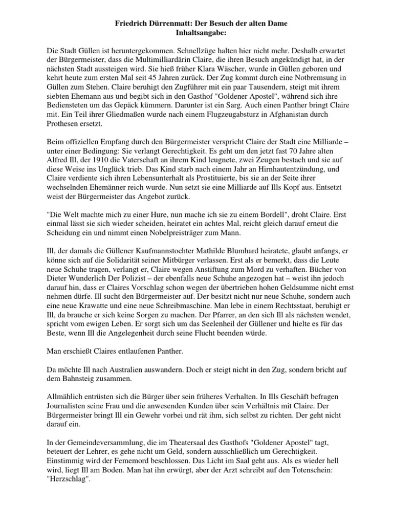 Inhaltsangabe Der Besuch Der Alten Dame Besuch Der Alten Dame